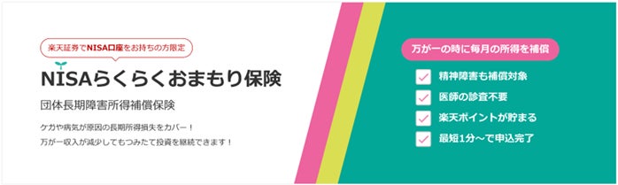 国内初!楽天証券のNISA口座保有者向けに長期の就業不能リスクを補償する保険「NISAらくらくおまもり保険」の提供を開始