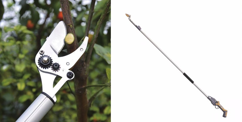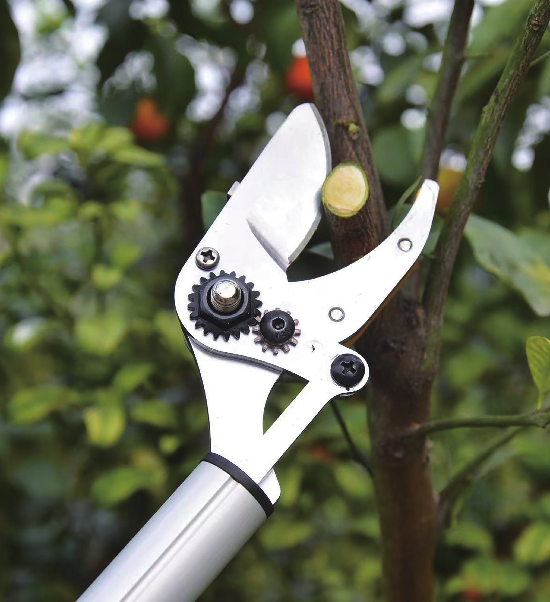 電動だから最大15㎜の枝もラクラク切断。重心が手元にあり高所の枝も狙いやすい。4段階の伸縮でどんな樹木にも対応!「充電式高枝電動鋏」がデビュー