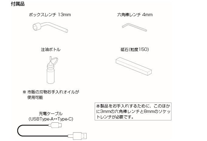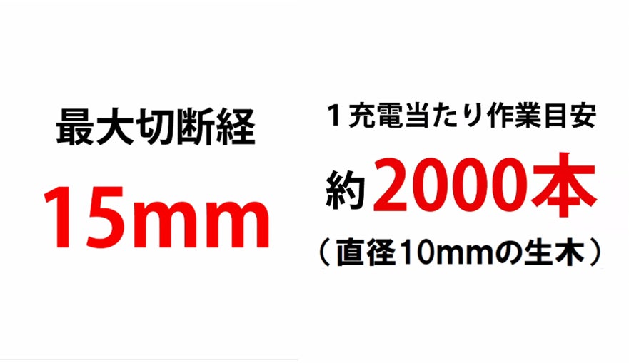 ・切断能力:10mm程度の生木 約2,000カット(満充電時)