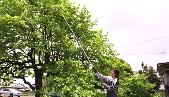 庭木の剪定や果実の収穫の季節。脚立を使わず地上から作業ができる「高枝切鋏」は便利なツールとして注目を集めています。ただ手動式の高枝切鋏は、太い枝が切りにくい、使い続けると手が疲れてしまう、というお悩みも。そんな方に「充電式高枝電動鋏」をご紹介いたします。本製品は電動式のため、トリガーを引くだけで、太い枝も簡単に切断でき、ラクに作業を続けることができます。