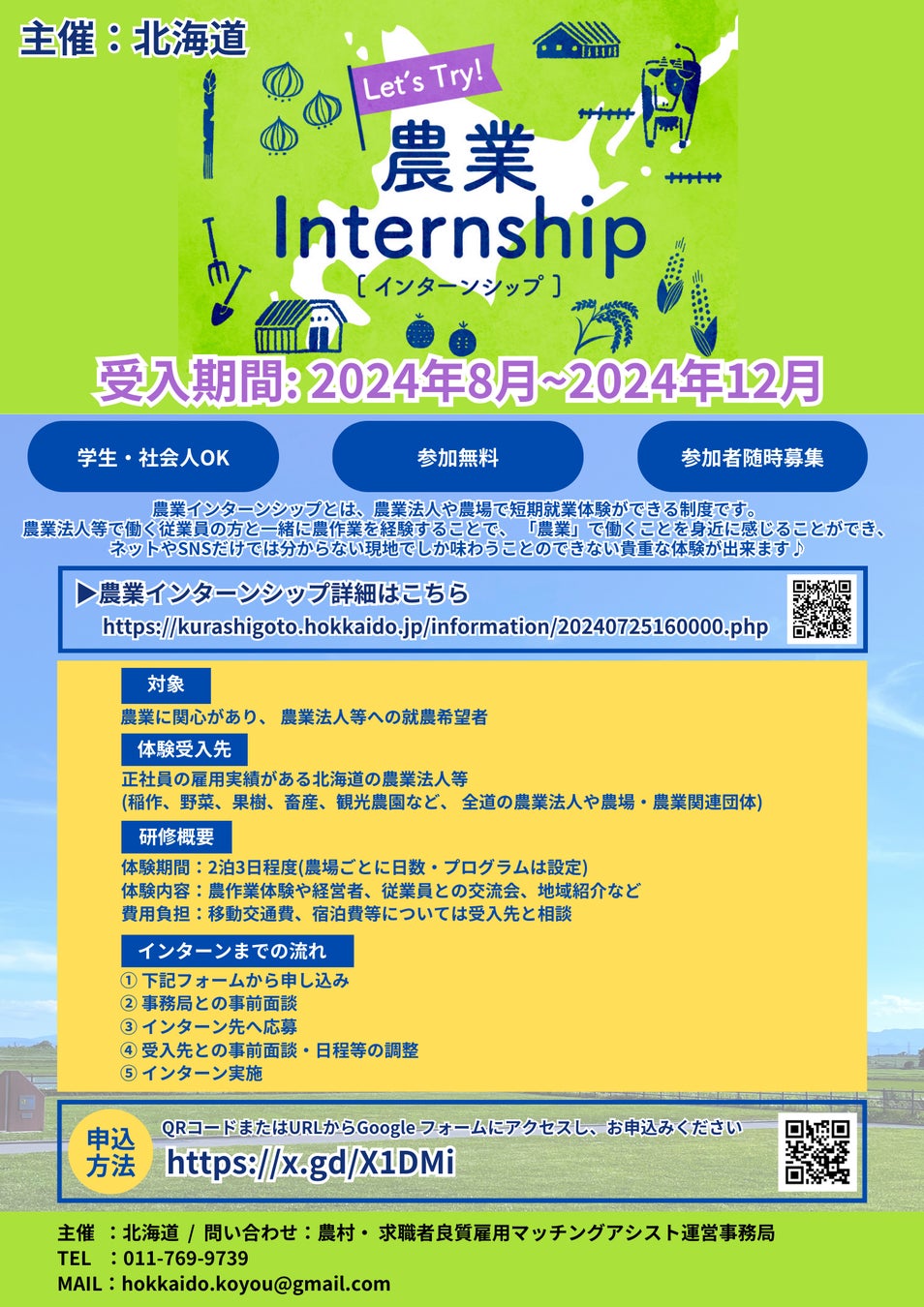 【就農/北海道/農業体験】レッツトライ!農業インターンシップ~北海道で農業体験してみませんか~