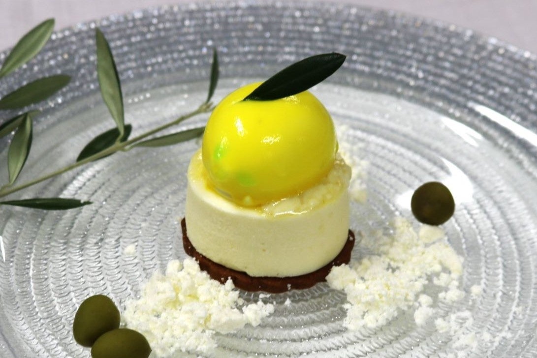 オリーブの花言葉は「平和」。広島の学生の平和を願う気持ちをカタチにすべく、広島県江田島・呉産のオリーブの実を使用し、『平和の贈り物・オリーブケーキ』と名付けました。塩漬けにした実を入れたレモンムースに濃厚なチーズケーキを合わせ、最後にオリーブの葉をトッピングして仕上げました。ケーキは3層になっており、上からレモンの酸味、チーズケーキの甘み、最後にほろ苦いクッキーと、3つの深い味わいの変化をお楽しみください。