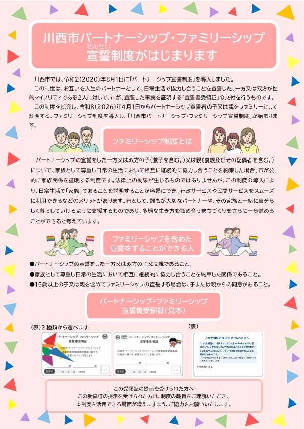 川西市パートナーシップ・ファミリーシップ宣誓制度スタート / 兵庫県川西市