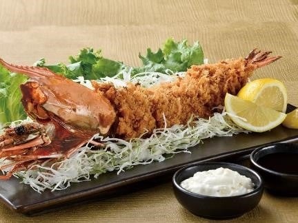お好みのソース(中濃・タルタル)で味変しながら、特大の海老フライをお楽しみください。