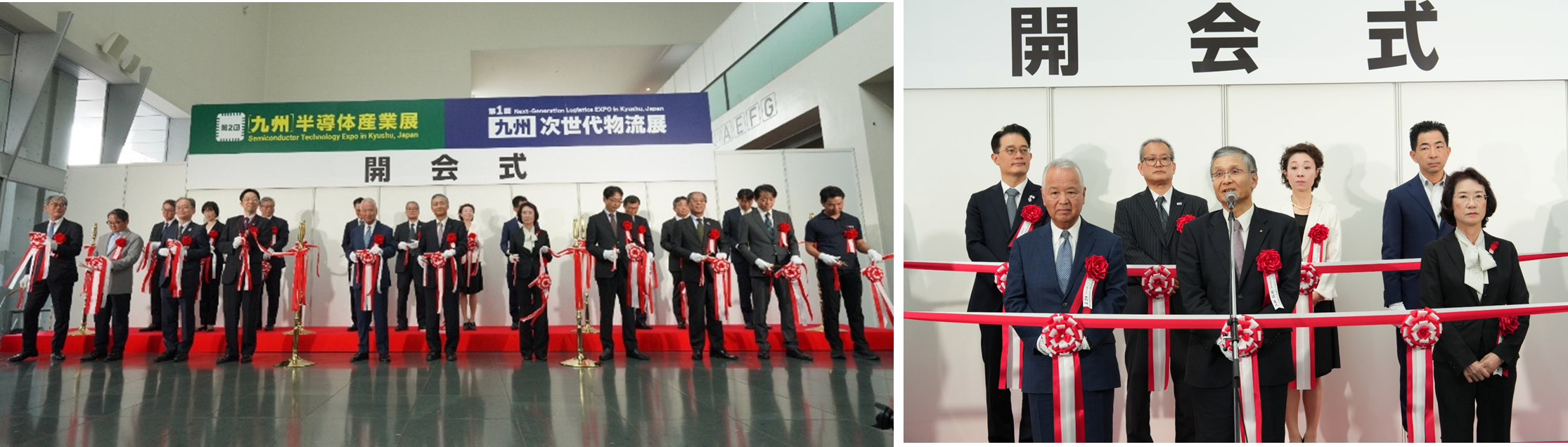 開催初日の10月8日(水)には、自由民主党 半導体戦略推進議員連盟 名誉会長 甘利 明 様、熊本県知事 木村 敬様、国土交通省 大臣官房審議官 木村 大 様をはじめ、多くのご来賓をお迎えし、開会テープカット式を行いました。式典では、九州における半導体産業のさらなる発展への期待が表明され、本展への熱い注目が集まりました。