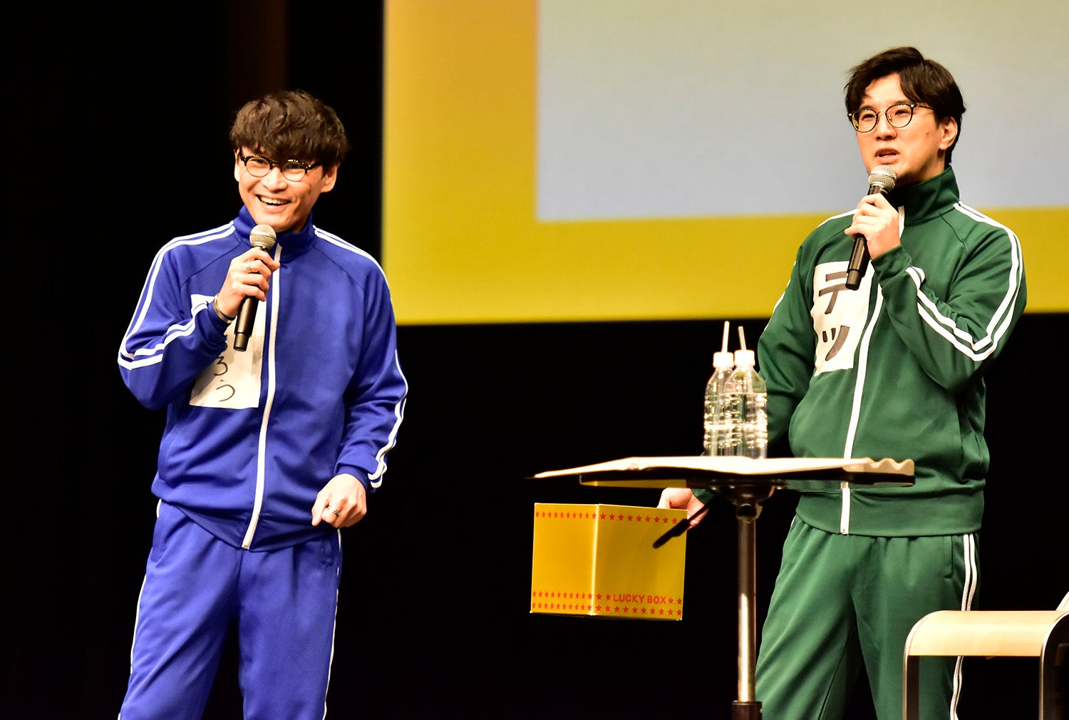後半の会場・配信限定パートでは、スペシャル企画「40代もやればできるもん! 夏の大運動会!」を実施。鉄塔と山口の2人がジャージ姿で、「ヨガ」「記憶力」「借り物競走」と、体と頭を駆使する3つの対決企画に挑戦しました。