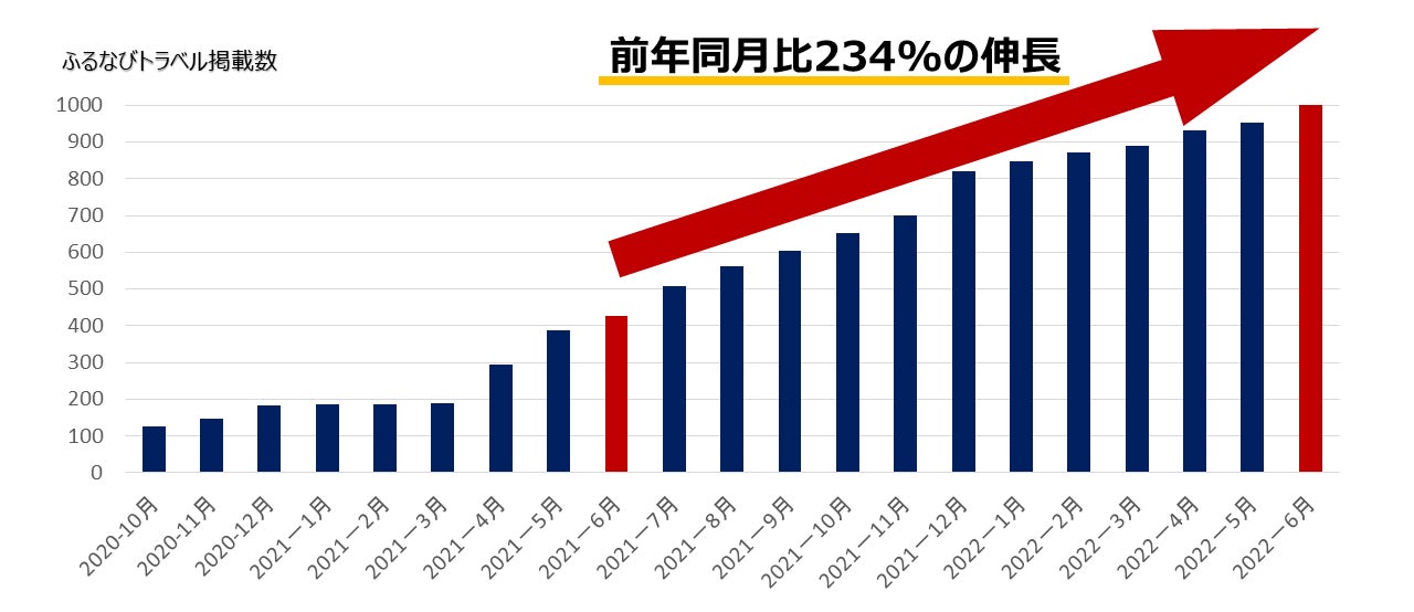 株式会社アイモバイル( 本社:東京都渋谷区、 代表取締役社長:野口哲也、 東証プライム市場 )は、運営するふるさと納税サイト「ふるなび」( https://furunavi.jp )が展開する旅行体験型の独自返礼品「ふるなびトラベル」( https://tp.furunavi.jp )において、2022年6月22日付で提携するホテル・旅館が前年同月比234%増加し、1,002施設に達しました。
