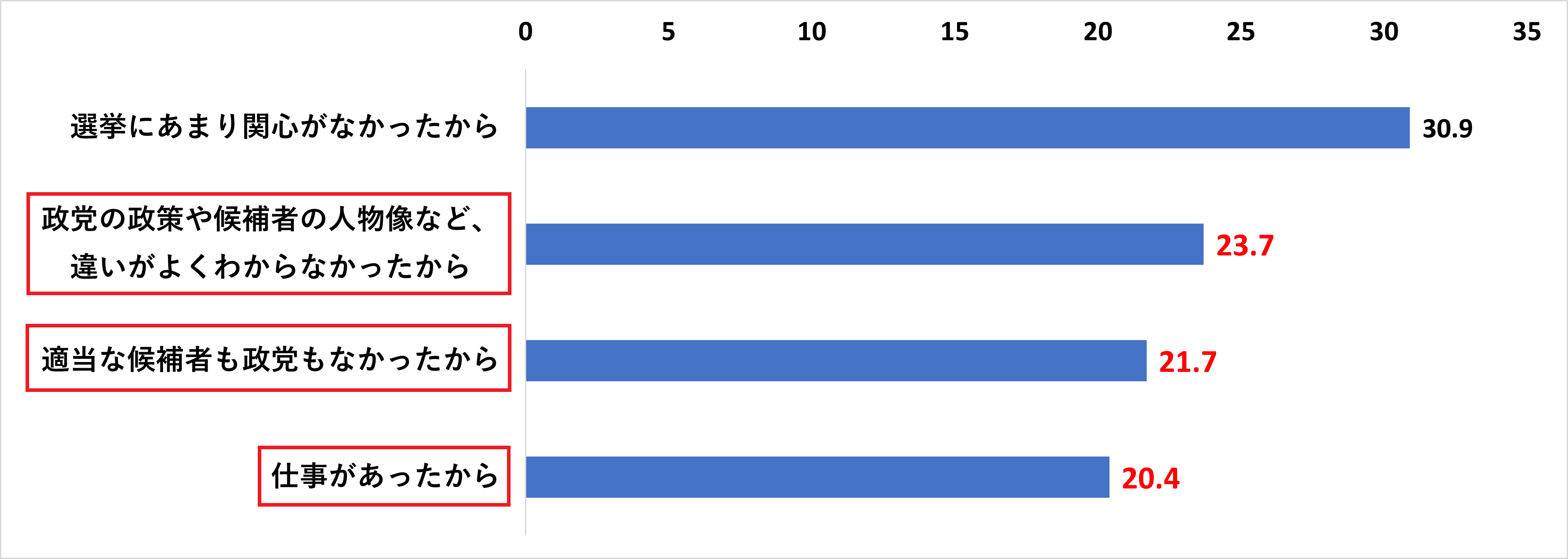 ・「政党の政策や候補者の人物像など、違いがよくわからなかったから」(23.7%)