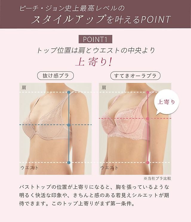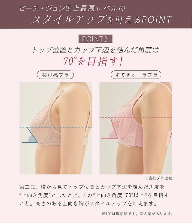 体のライン・シルエットが美しく見えるブラが欲しい、というニーズを追求し、名前の通り、着けるだけでいきいきとした魅力的なオーラがあふれる!をコンセプトに誕生した「すてきオーラブラ」。