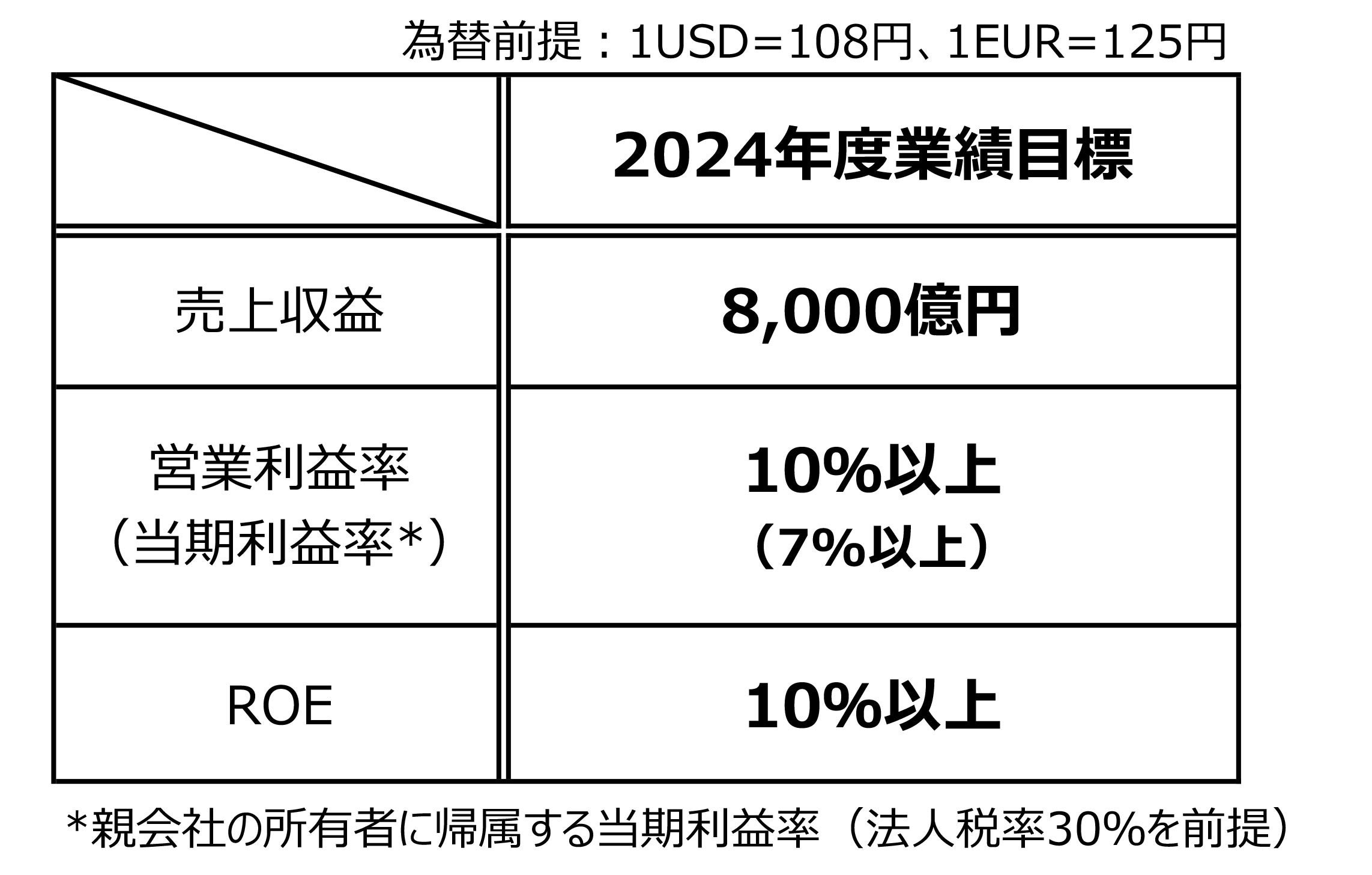本日発表した2022年度の通期業績予想は、1USD=122円、1EUR=133円を前提としているが、上記の「事業ポートフォリオの変化イメージ」では、成長の方向性や規模を分かりやすく説明するため、2022年度の数値についても2024年度の業績目標と為替前提を合わせて1USD=108円、1EUR=125円を適用