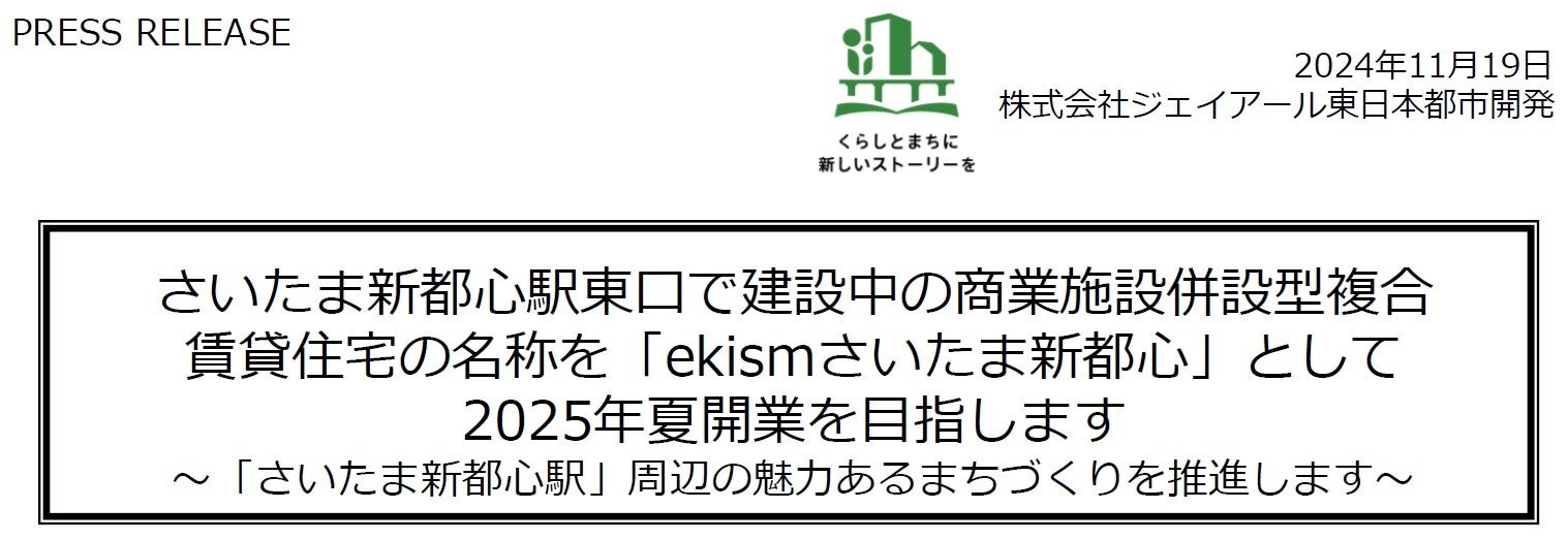 さいたま新都心駅東口で建設中の商業施設併設型複合賃貸住宅の名称 を「ekismさいたま新都心」として2025年夏開業を目指します