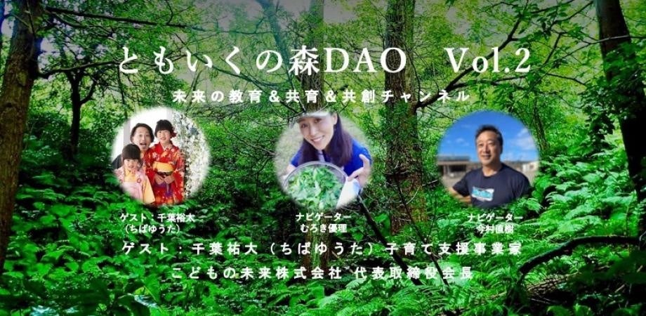 こどもの未来株式会社代表取締役会長の千葉祐大氏が「Vol.2 ともいくの森DAO 〜未来の教育&共育&共創チャンネル 〜」に登壇。ラジオ寺子屋代表のむろき優理氏、星山プロジェクトの今村直樹氏が主催