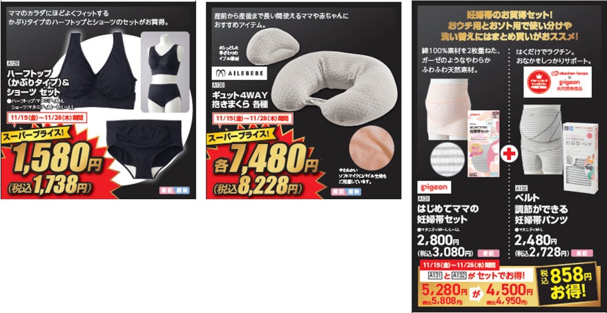 他にも、出産準備や子育てに欠かせない商品も多数ご用意し、皆さまのお買い物や子育ての暮らしをサポートしてまいります。