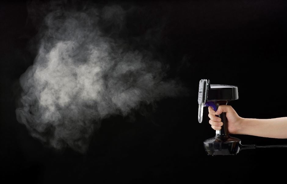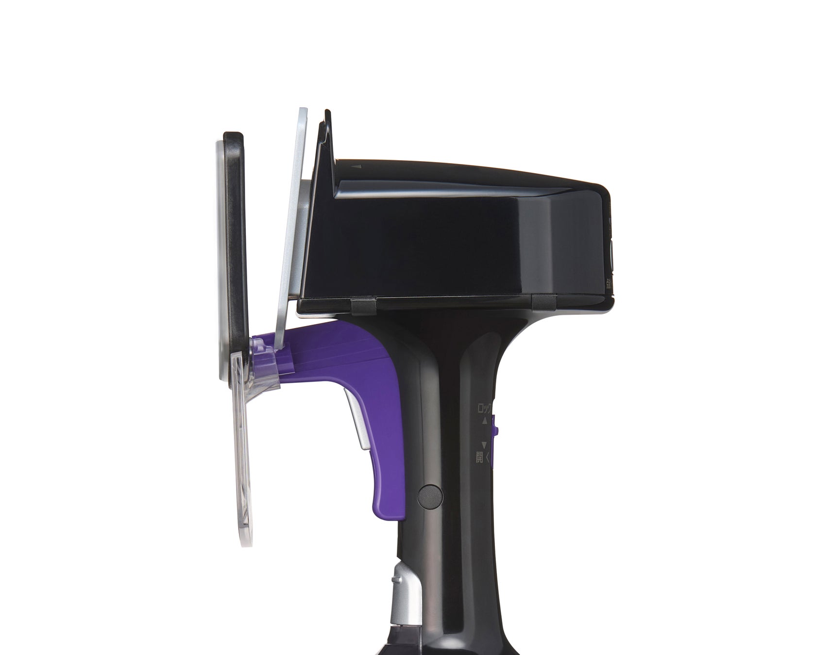当社史上最高※2のスチーム量を噴射でき、シャツやジャケットをしっかりとシワ伸ばしできます。スチームの力で脱臭、除菌※3もでき、洗いにくい衣類のお手入れにも最適です。既存品※4と比較してタンク注水量が約60mlから約100mlにアップしたことで、スチーム連続使用時間も1.8倍の約10分間連続使用が可能です。
