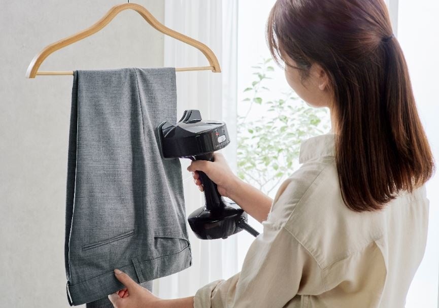 はさんでプレス!ズボンプレッサー機能搭載ハンガーにかけた状態でセンタープレスが可能「プレススチーマー」発売