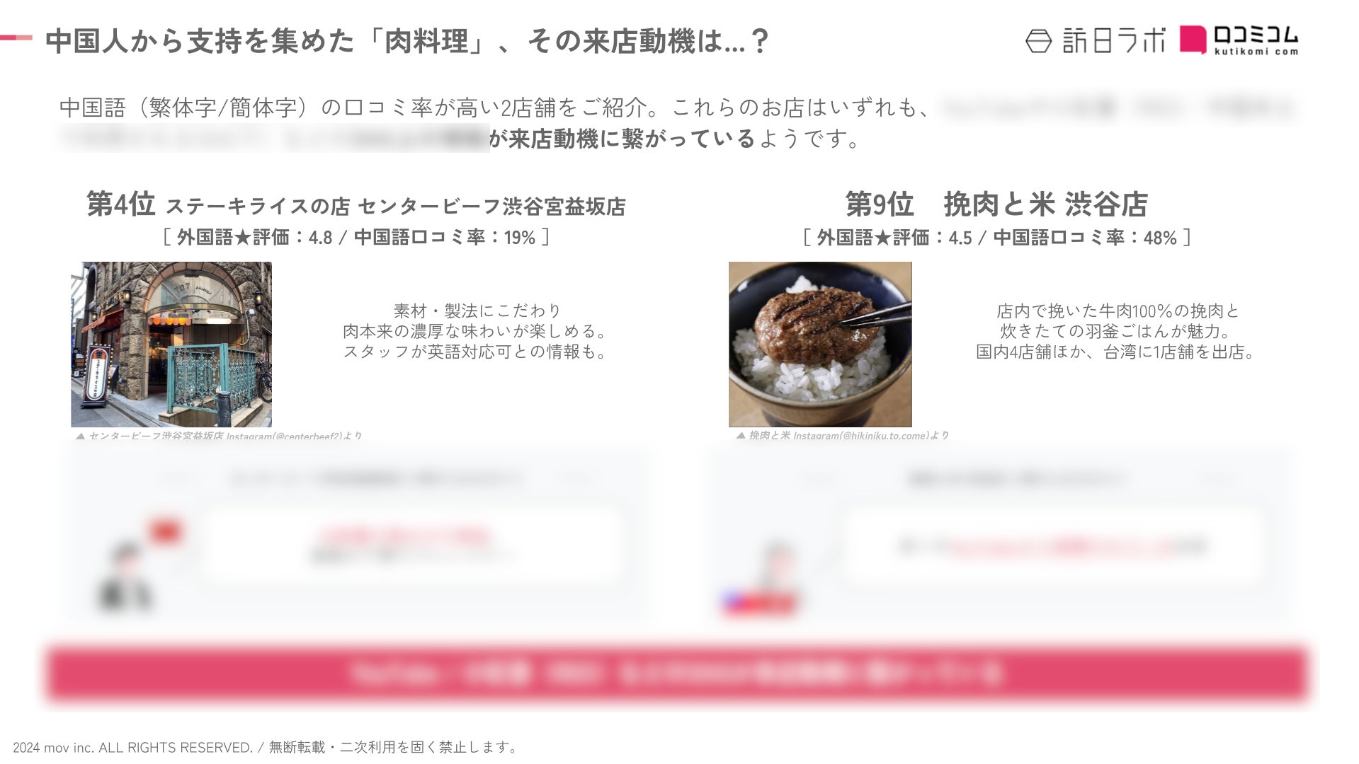 さらに本レポートでは、ランキング上位のなかでも中国語(繁体字/簡体字)の口コミ率が高い2店舗をご紹介。
