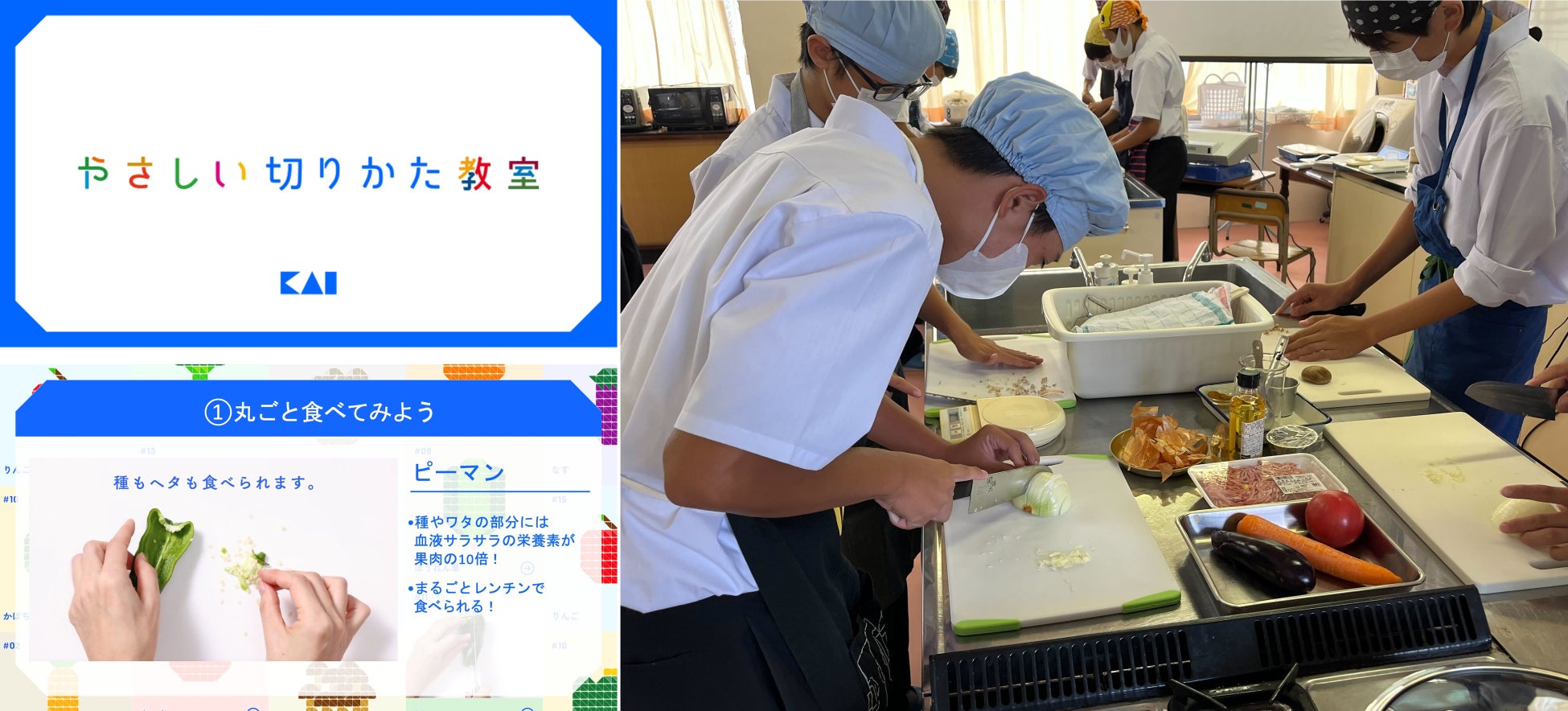 奈良県生駒市は「SDGs未来都市」「脱炭素先行地域」に選定され、環境モデル都市としてSDGsの推進とともに環境配慮の活動に力を入れて取り組んでいます。貝印は「いこまSDGsアクションネットワーク」の会員として、生駒市のSDGsならびに環境配慮活動へ貢献するため、このたび特別授業という形にて手を取り合い、今回の「やさしい切りかた教室」を通じて、生徒の皆さま一人ひとりが、ムダのない野菜の切り方を習得・実践し、フードロスと環境配慮について興味関心を持ち、考えるきっかけにしていただきたいという思いから、開催に至りました。