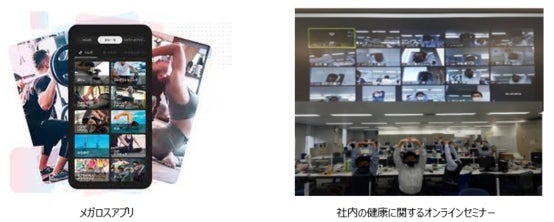 ・当社オリジナルの健康アプリ「メガロスアプリ」を全従業員に使用できるようにしています。アプリ内には食事管理機能や、属性やニーズに合った運動メニューを掲載しており、属性に合った運動方法を紹介しています。
