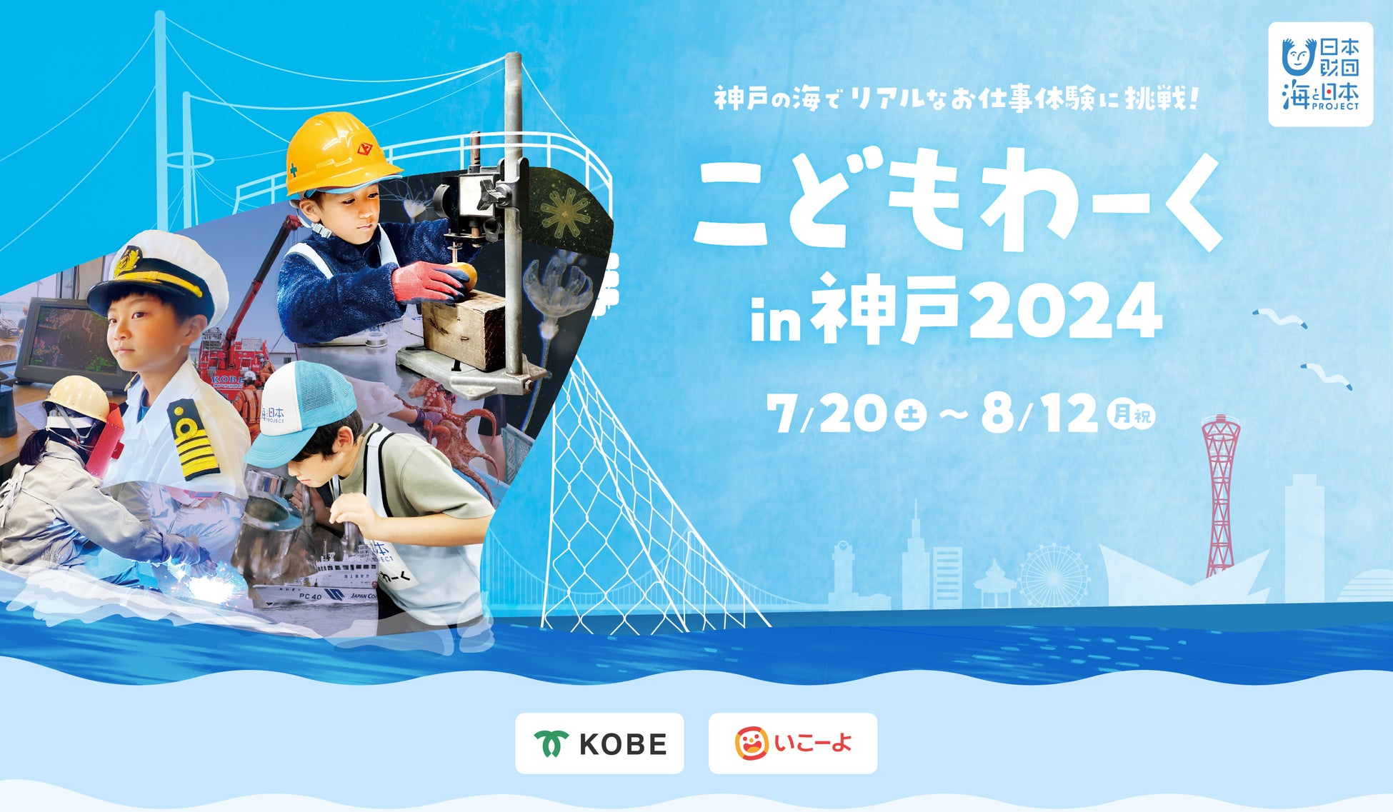 「こどもわーくin神戸」は兵庫県神戸市との「海洋人材の育成に関する事業連携協定」の一環として2022年にスタートし、これまで1,700人以上の親子に神戸の海に関わるリアルなお仕事体験プログラムを提供して参りました。普段の生活の中ではなかなか気づくことのできない”海”と自分たちとのつながりを実感し、その魅力や面白さを知ることで、子どもたちの健全な成長と神戸の地域および海洋産業の発展につなげていきます。