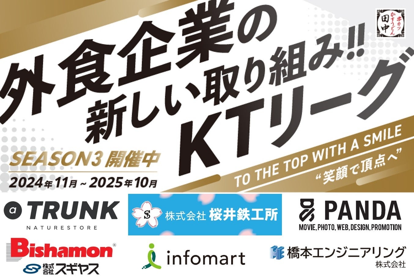 株式会社串カツ田中ホールディングス(本社:東京都品川区東五反田、代表取締役社長:坂本 壽男)が展開している串カツ田中は、KTリーグをとおして、多くのスポンサー企業様にご支援をいただいております。このたび、スポンサー契約を締結し、2025年4月より各店をご支援いただけることになった企業様6社(うち2社はご契約更新)をご紹介いたします。