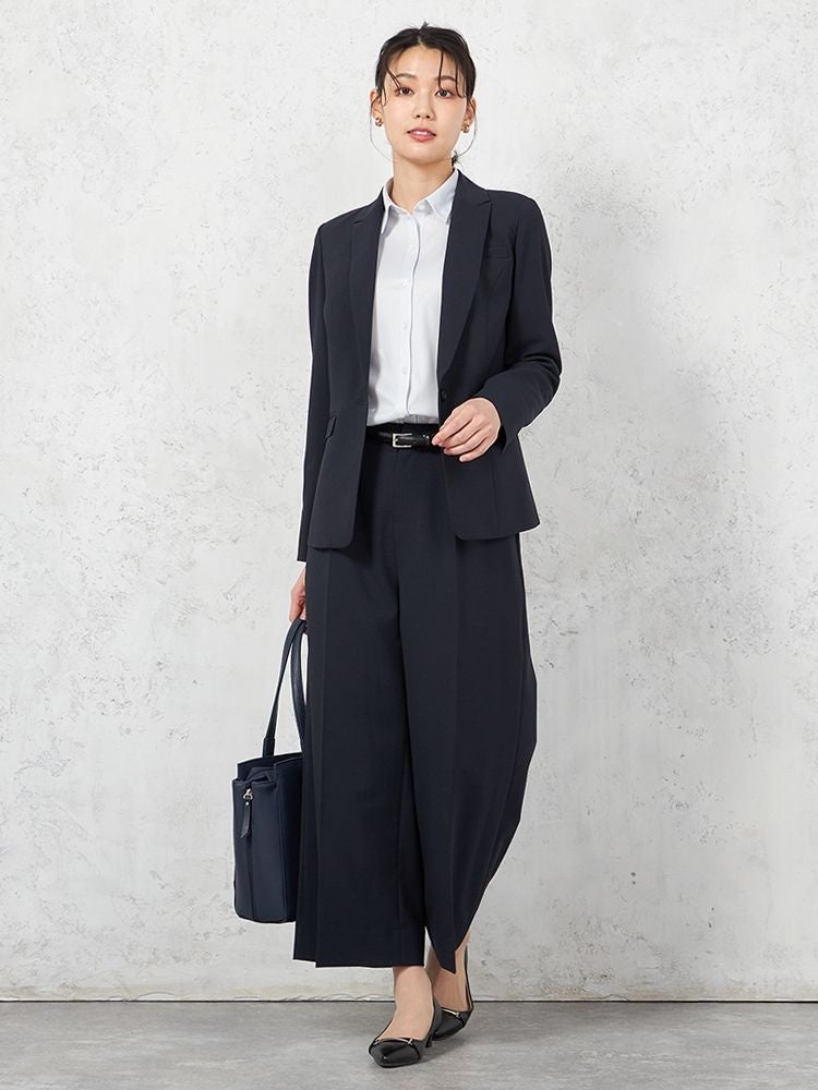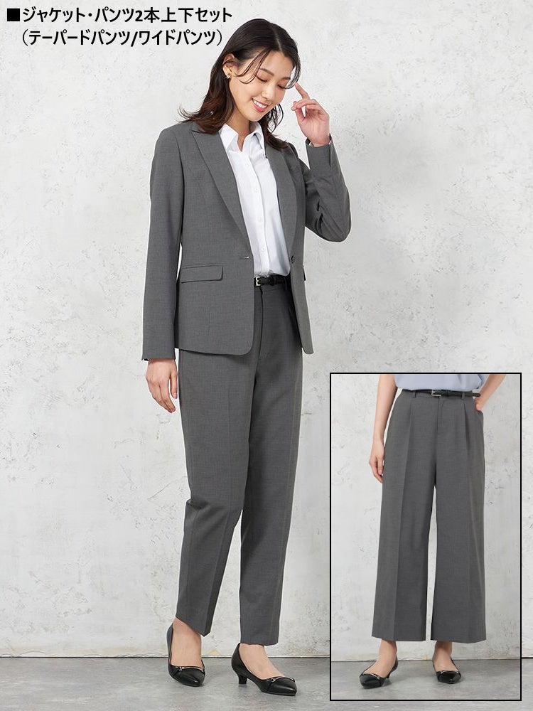 このたび展開を開始する「SOFFICE ツーパンツセットスーツ」は、テーラードジャケット+テーパードパンツ+ワイドパンツの3点セットです。メンズの夏用ビジネスウェアで定番のツーパンツスーツがレディスにも登場いたしました。パンツデザインを2パターンにすることでシーンや気分によってスタイリングを選べる着回し上手になれるセットアップスーツとなっております。