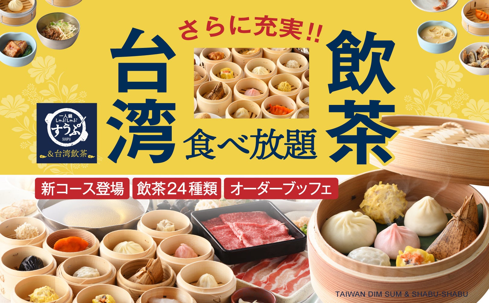 【更に充実!飲茶食べ放題!】“すうぷ静岡パルコ店”で人気の『台湾飲茶』に新メニューが登場!『台湾一人鍋しゃぶしゃぶ』とともに『24種』にパワーアップした『飲茶食べ放題』をオーダーブッフェでご堪能あれ!