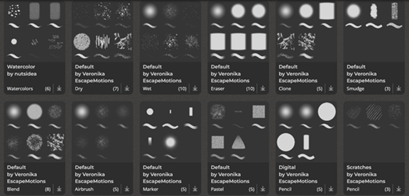 パレットナイフ、水彩画、墨絵ブラシ、リアルな鉛筆など190以上のブラシプリセットを搭載しています。公式サイトからさらに多くのブラシプリセットを無料ダウンロードできます。