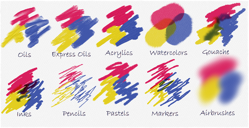 伝統的な顔料の光スペクトルに基づく物理的な混色が搭載され、混色がさらにリアルになりました。RGBの完全な色域で作業することができ、どんな画像も絵画に取り込めます。