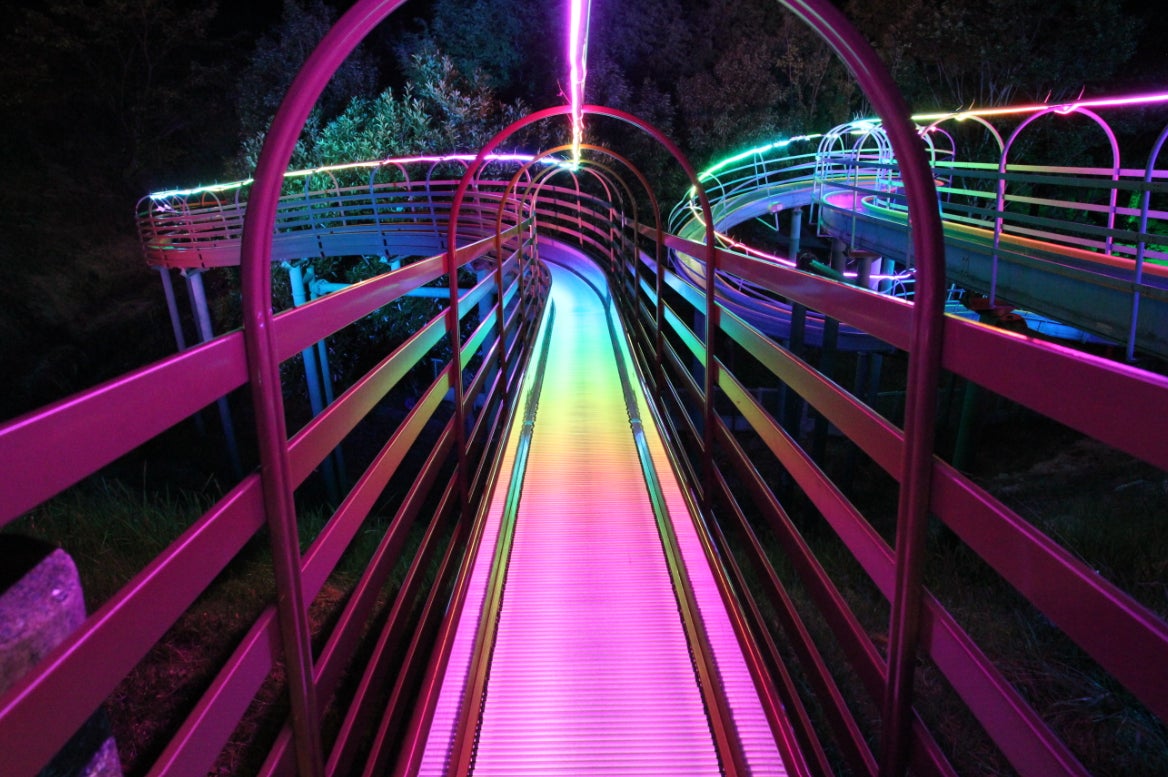 油山で大人気のローラースライダーが3日間限定でライトアップされます。
