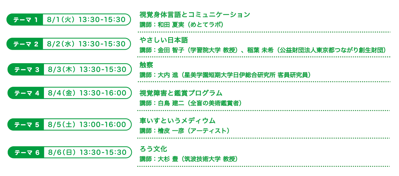 ・レクチャー&ワークショップ 8月1日(火)~ 6日(日)