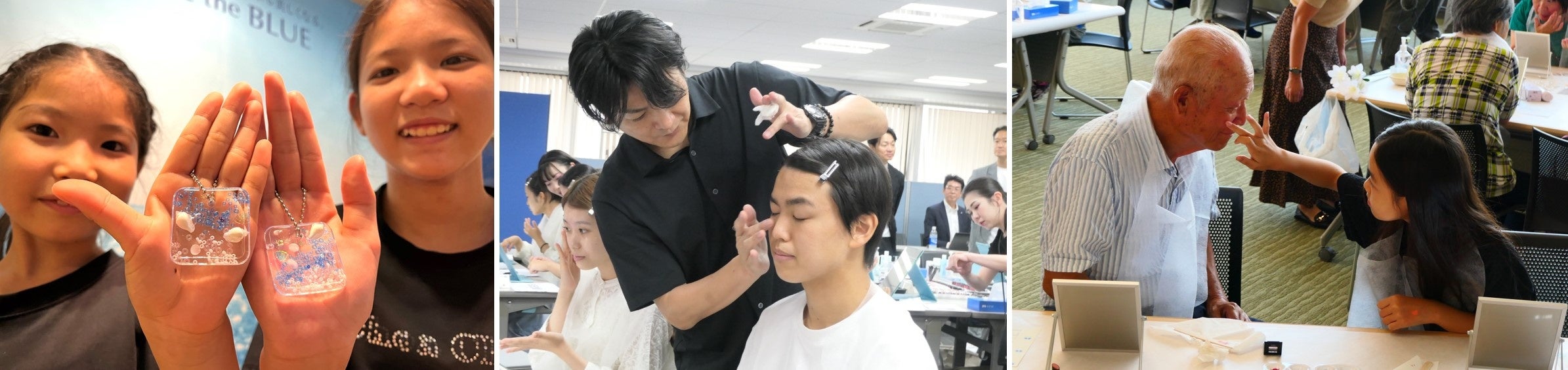 敬老の日当日に、ご祖父母とお孫さんが触れ合いながら、世代や性別を問わず、化粧品のチカラで笑顔になっていただくことができました。
