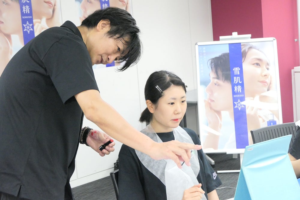 フィギュアスケートでは、メイクも演技の表現力に関わる重要な要素でありながら、特に学生選手にとっては悩みの一つにもなっています。9月2日・3日の2日間、長年フィギュアスケート日本代表選手のメイクやメイク指導を行う当社のメイクアップアーティスト石井勲が、関西圏の大学生フィギュアスケーターを対象にメイクレッスンを実施。参加した13大学、約80名の学生選手に、スキンケア、メイク方法の基礎や、学生選手一人ひとりに似合うメイクアップの指導を行いました。