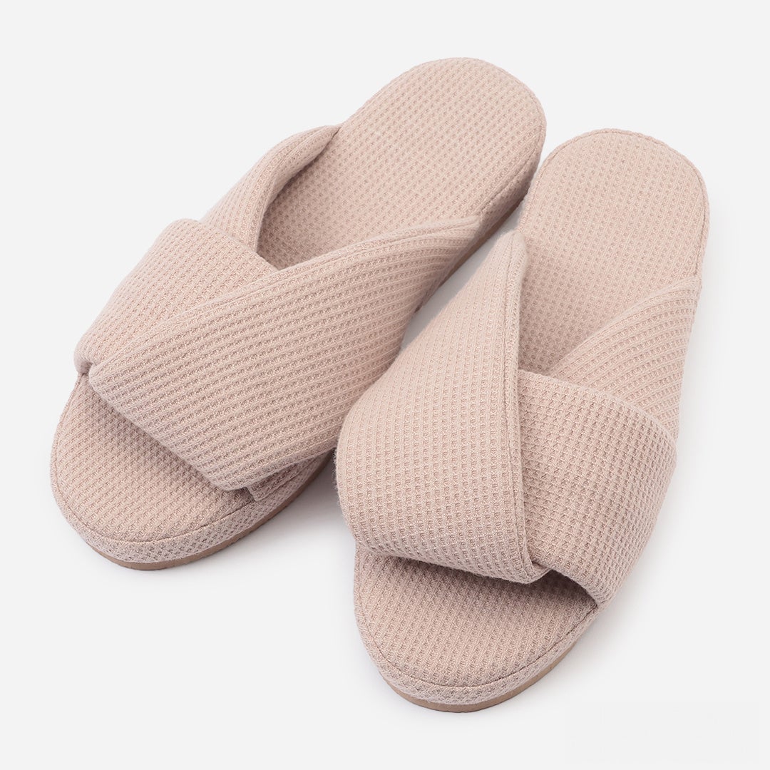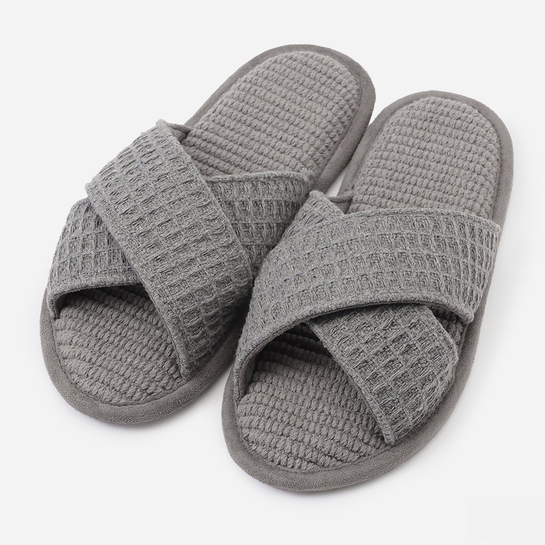 少し凹凸感のあるワッフル生地を使用しており、さっぱりとした履き心地でリラックスタイムにも最適です。見た目の美しさと履き心地の良さを兼ね備えたスリッパは、自分用にもプレゼントにもぴったりです。