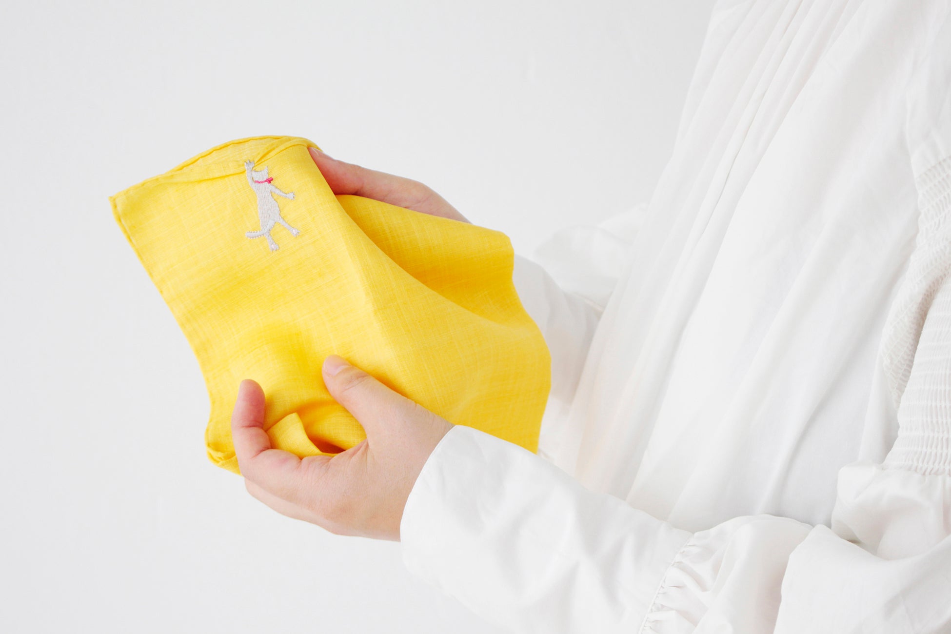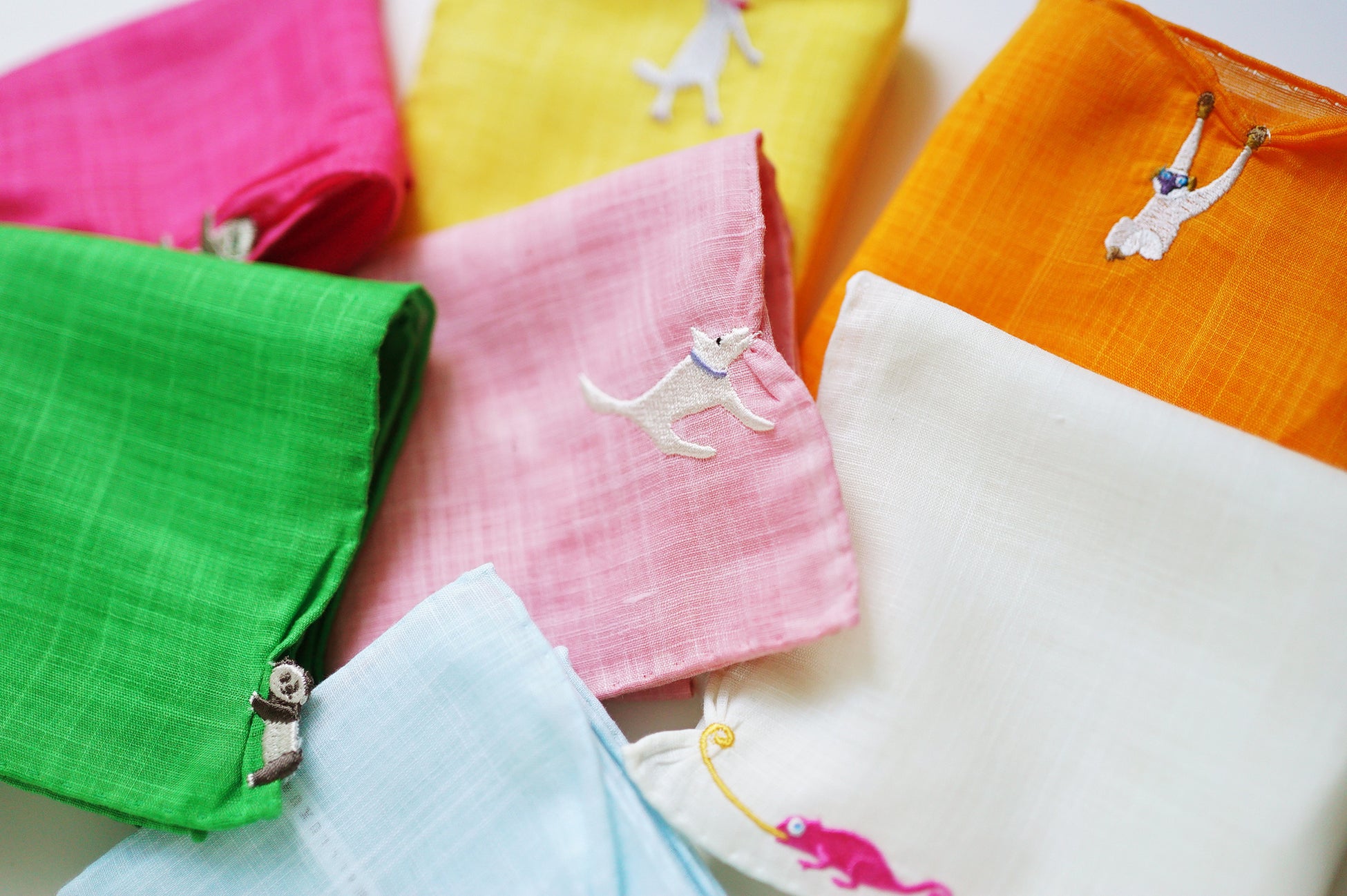 ハンカチの縁を動物が引っ張ったり、しがみついたり、ひょっこり飛び出したりする様子を刺繍で表現したユニークなハンカチーフ。犬やパンダなど、様々な動物をモチーフにしたハンカチを展開します。ご自身用はもちろんプレゼントにもおすすめです。