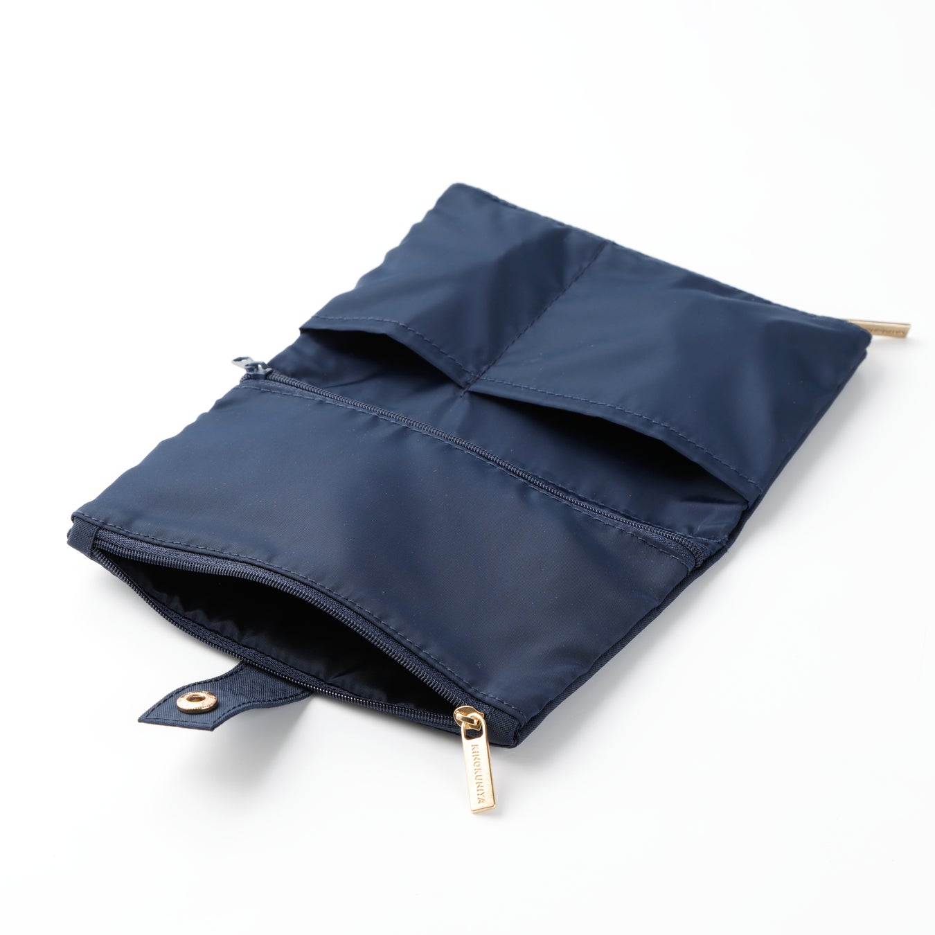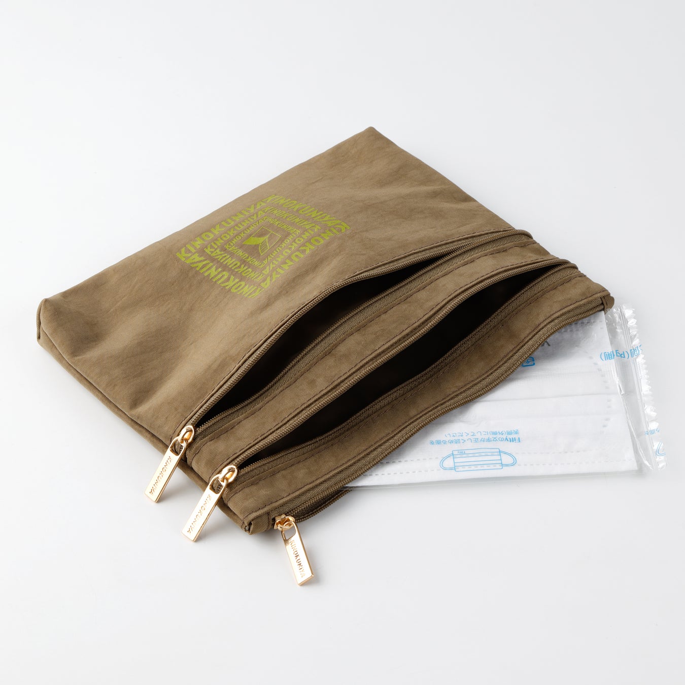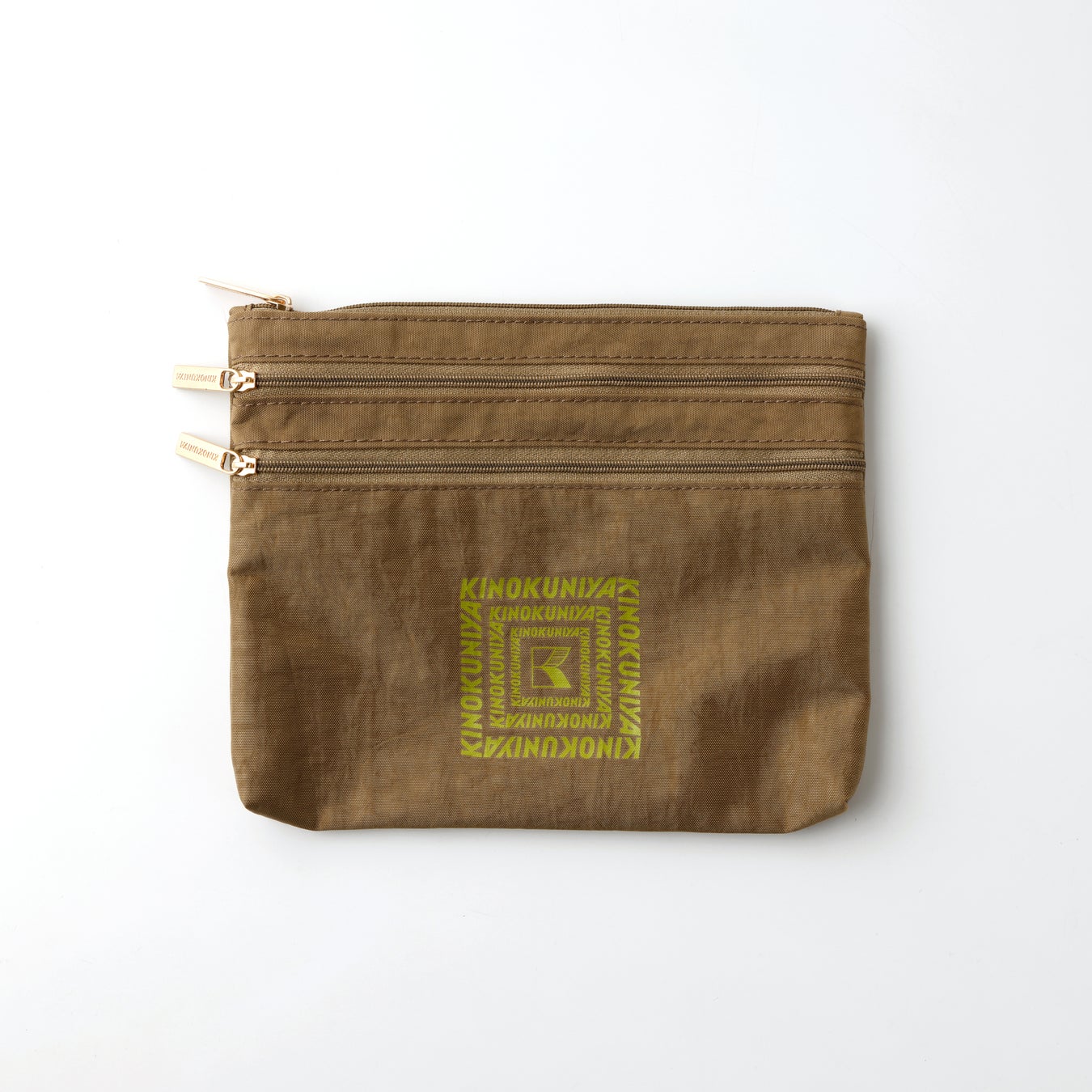 3つに分かれたポケットで、小物をサイズごとに整理しやすい仕様。細かなアイテムも迷わず収納でき、バッグの中をすっきり整えたいときに便利です。取り出しやすさにも配慮したデザインで、日常使いはもちろん、外出先でもスマートに使えます。紀ノ国屋オリジナルのファスナーがアクセントになり、さりげない特別感を添えています。