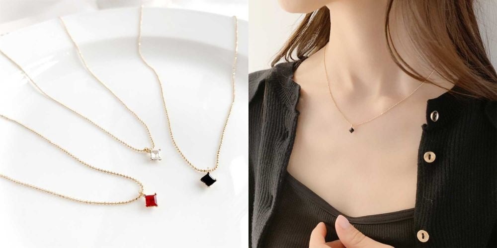 宝石のような輝きが美しい、ワンポイントネックレス。