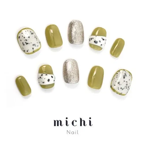 ピスタチオグリーンにうずら模様が合わさったネイル。個性派で周りと差をつけられるデザインです。ジェルでやるのはちょっと勇気がいる奇抜なデザインも、ネイルチップならその日だけ楽しむこともできるので挑戦しやすくおすすめです。