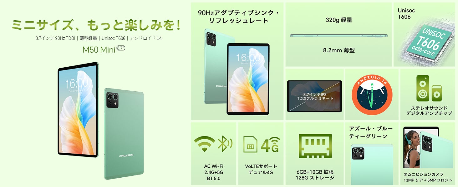 Teclast高リフレッシュレート(90Hz)版「M50 mini」販売開始!8.7インチ小型、16GBのメモリー容量、3日間限定超激安¥13,900で手に入れます!