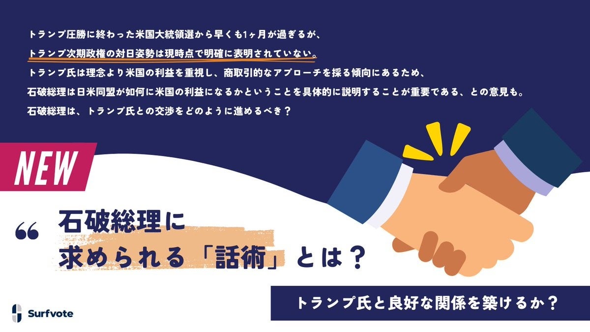 【石破総理に求められる話術とは?】Surfvoteで意見を募集中