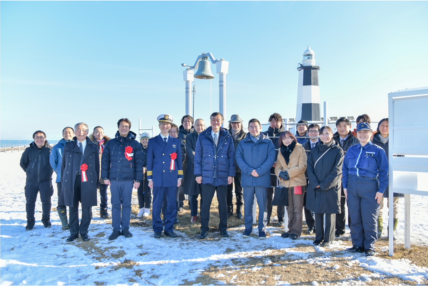 12月19日(金)には竣工式も行われ、来賓として網走市長を始め紋別海上保安部長、海と灯台プロジェクト事務局長、北海道オホーツク総合振興局産業振興部商工労働観光課観光室長をお招きし、地元を中心に多くの見学者も参加しました。式ではホタテ貝の絵馬への願い事記載、鳴鐘に加え、紋別海上保安部のご厚意により灯台の開放も行なわれました。TV局や新聞社の取材もあり、北海道内での話題提供と知名度向上にも役立ちました。