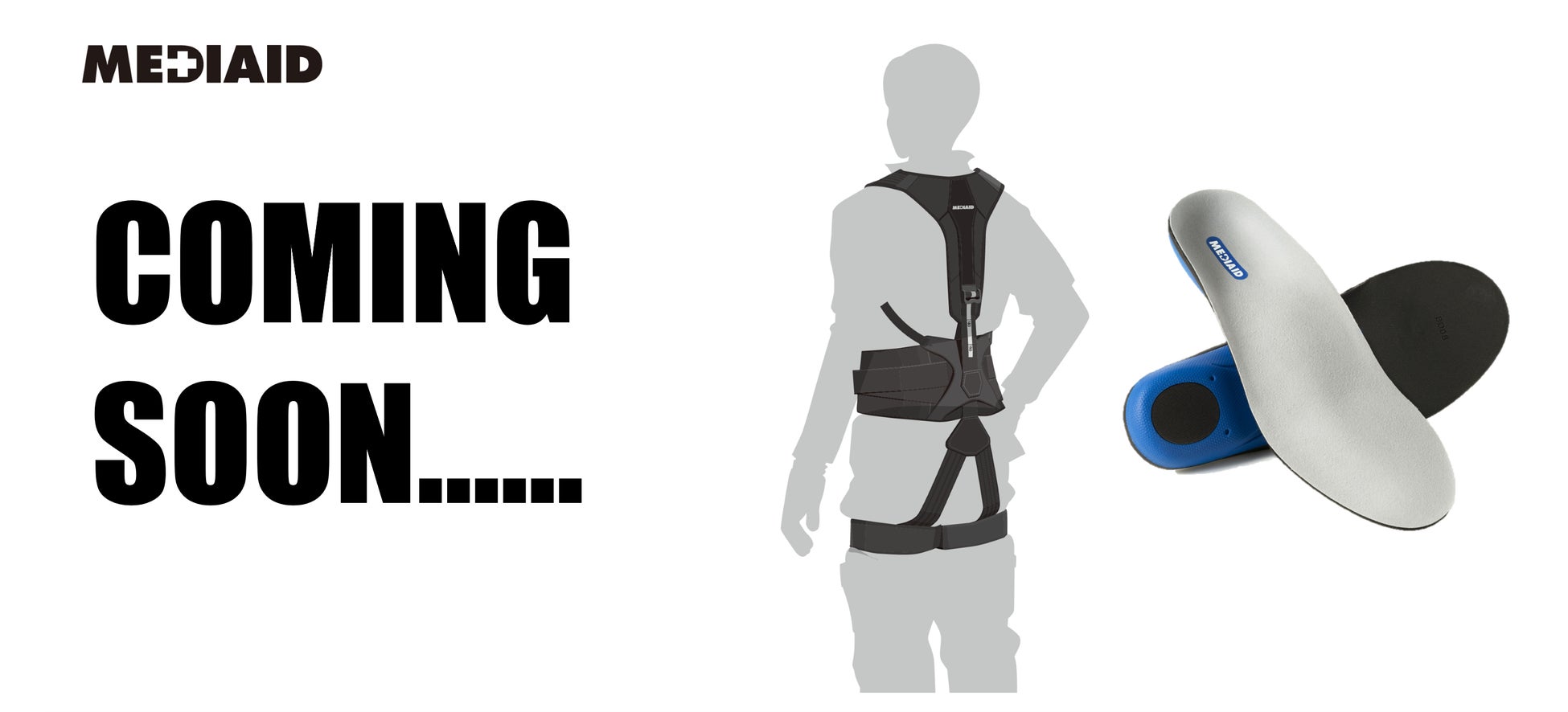 メディエイド アシストギア 腰ユニットに加え、来春発売予定の新型アシストスーツ製品、インソール製品を参考展示いたします。