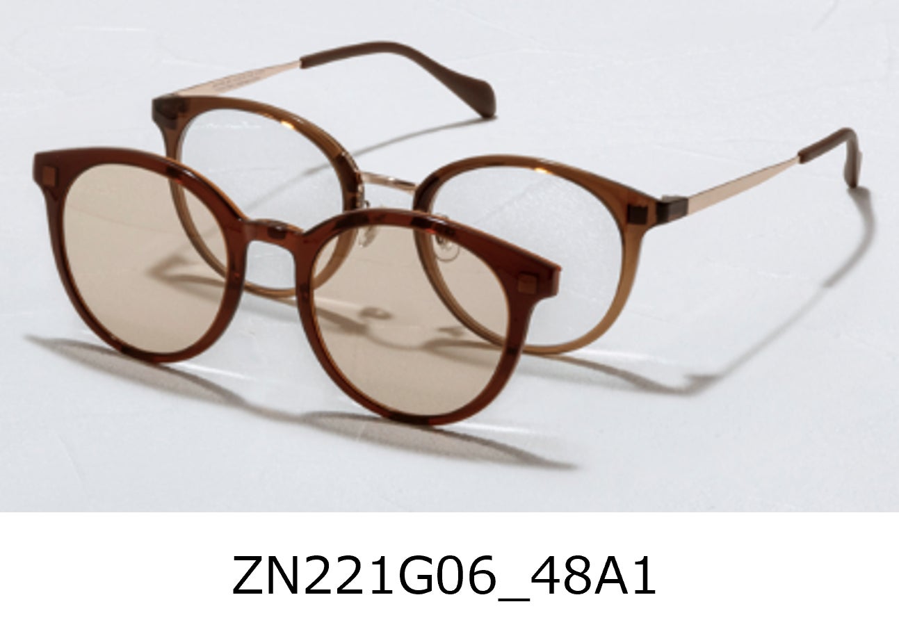 マグネットでフロントアタッチメントを簡単に着脱できる、便利な2WAYグラス。今季は目元の表情を透かして見せて引き立てるライトカラーのレンズが新登場。路面や水面などの反射光を抑制する偏光機能も装備しているので、ドライブやアウトドアシーンにも最適です。