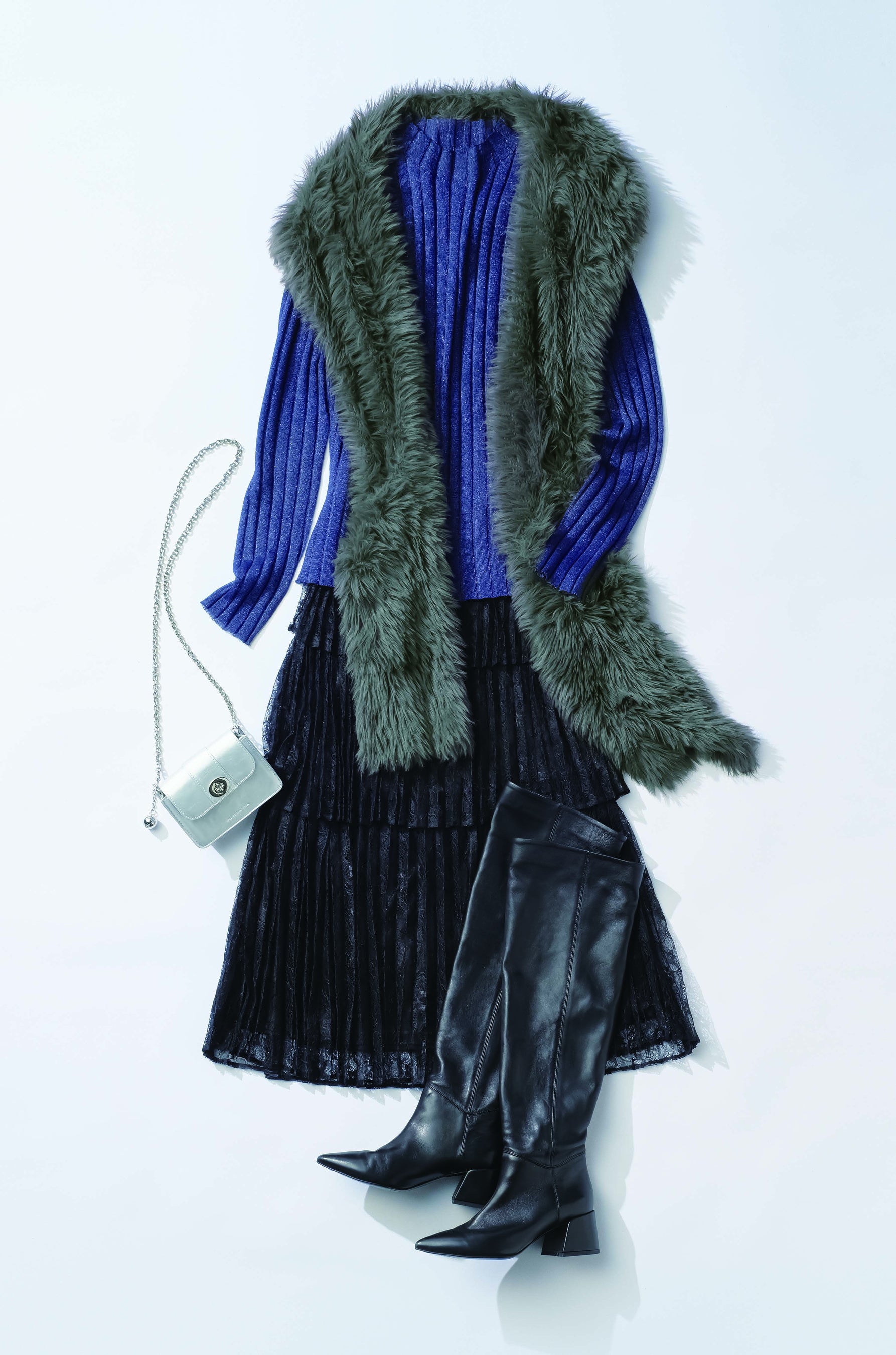 シアーニットのプルオーバーにボリューミーなスカートを合わせれば、ラグジュアリーなボヘミアンスタイルに