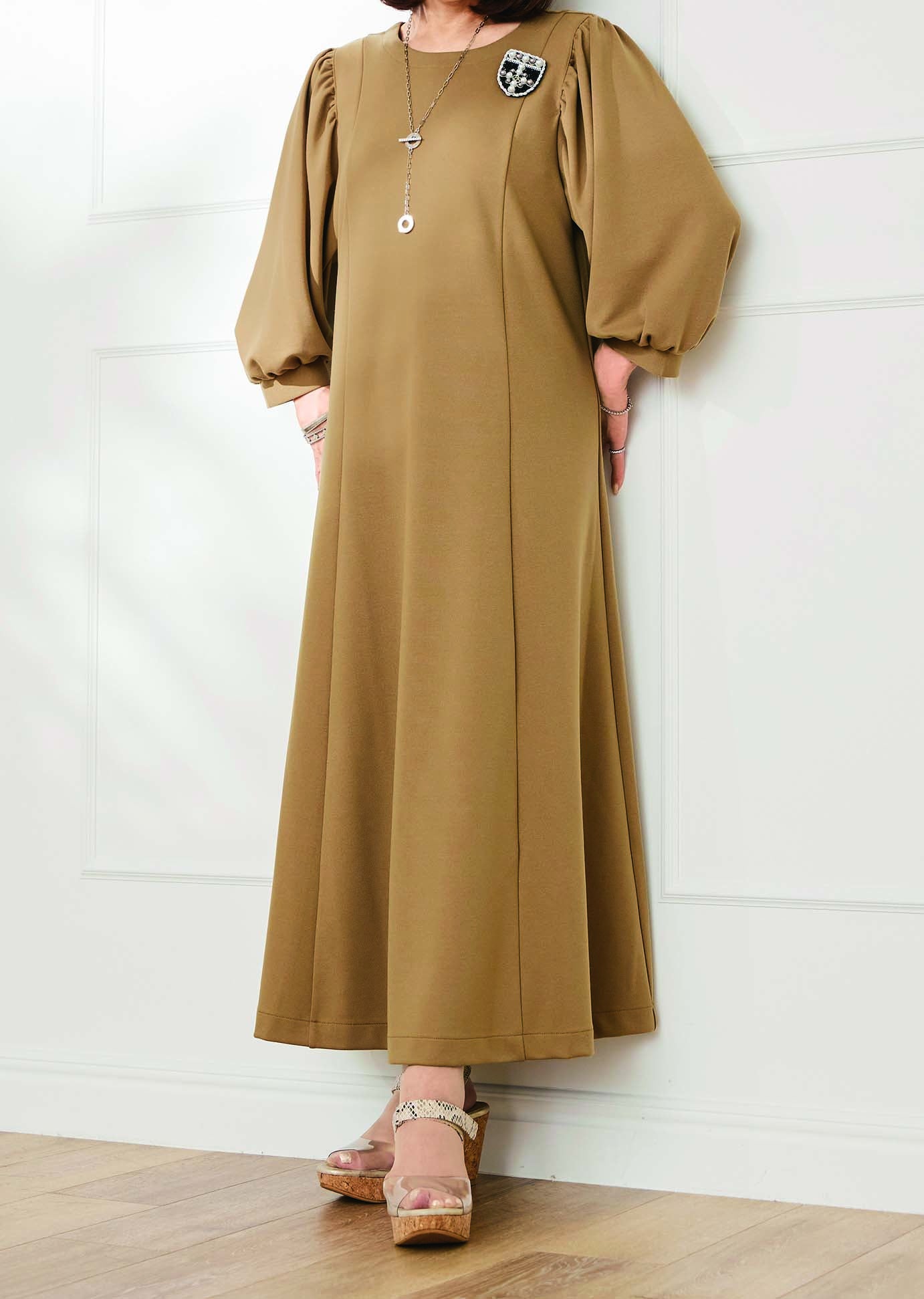 ふんわりとしたパフスリーブとフレアー感が印象的。スタイルアップ効果も期待できるエレガントなワンピースを紹介します。