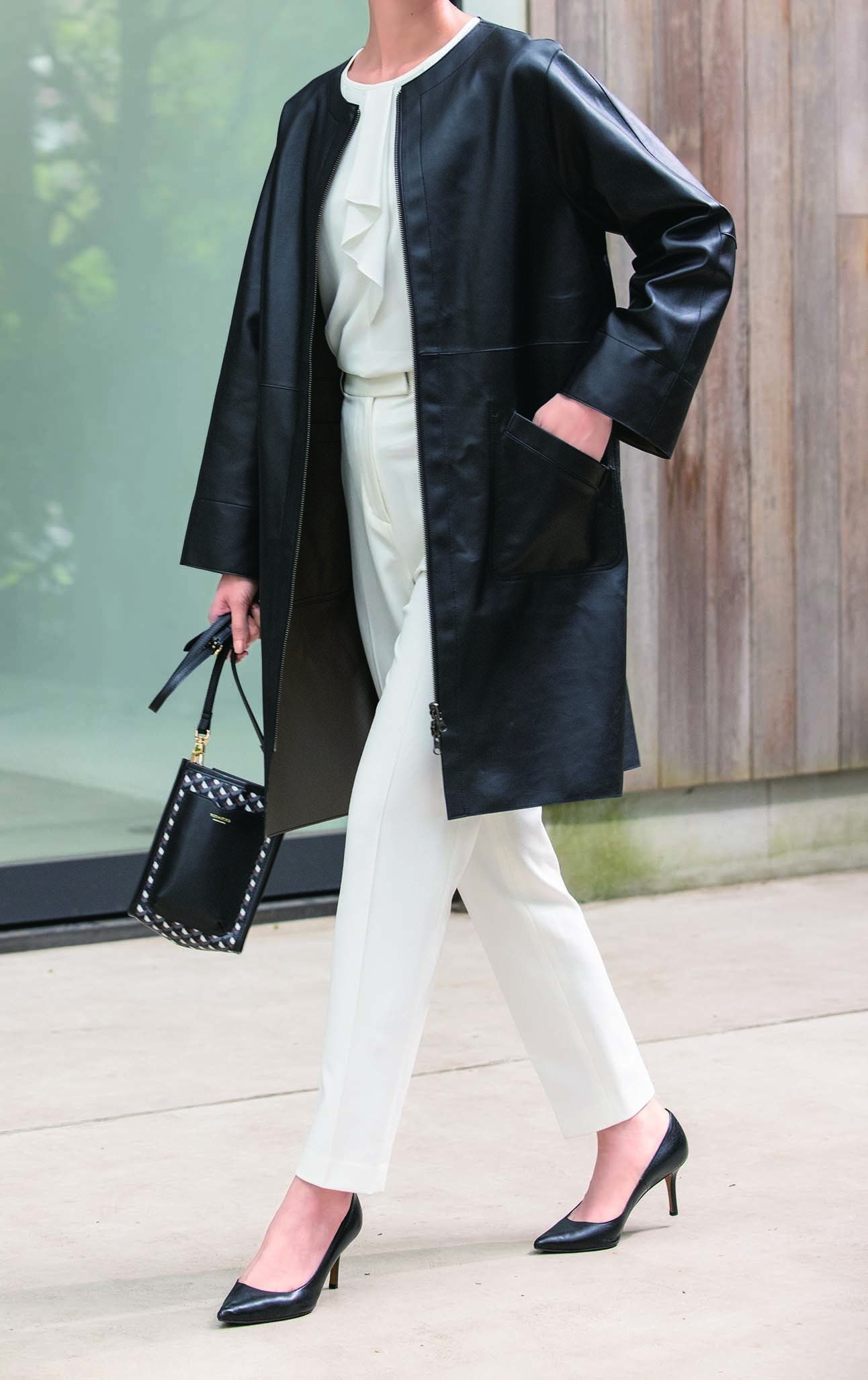 クールな小物と組み合わせることで、ニューヨーク風のモダンでシャープなスタイルになります。
