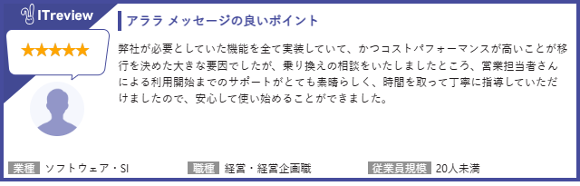 ※アララ メッセージご利用のお客様からのレビューはアイティクラウド社のWebページでご覧いただけます。