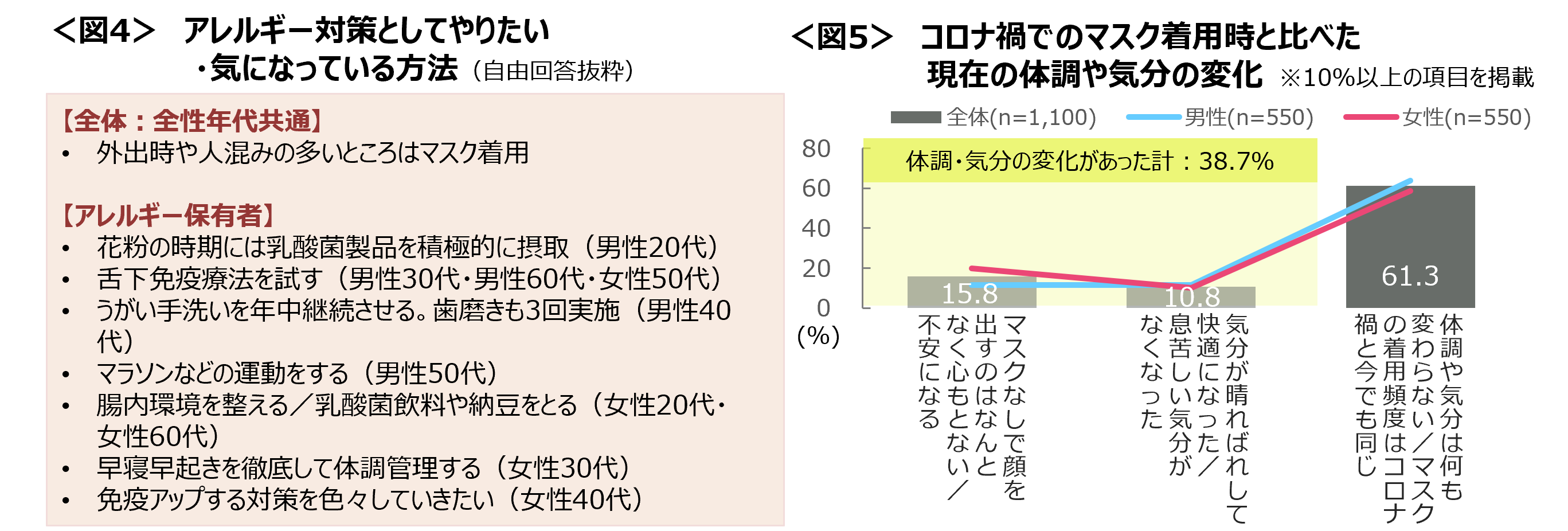アレルギー対策として今後やりたい・気になっている方法は、外出時や人混みでの「マスク着用」がメイン。
