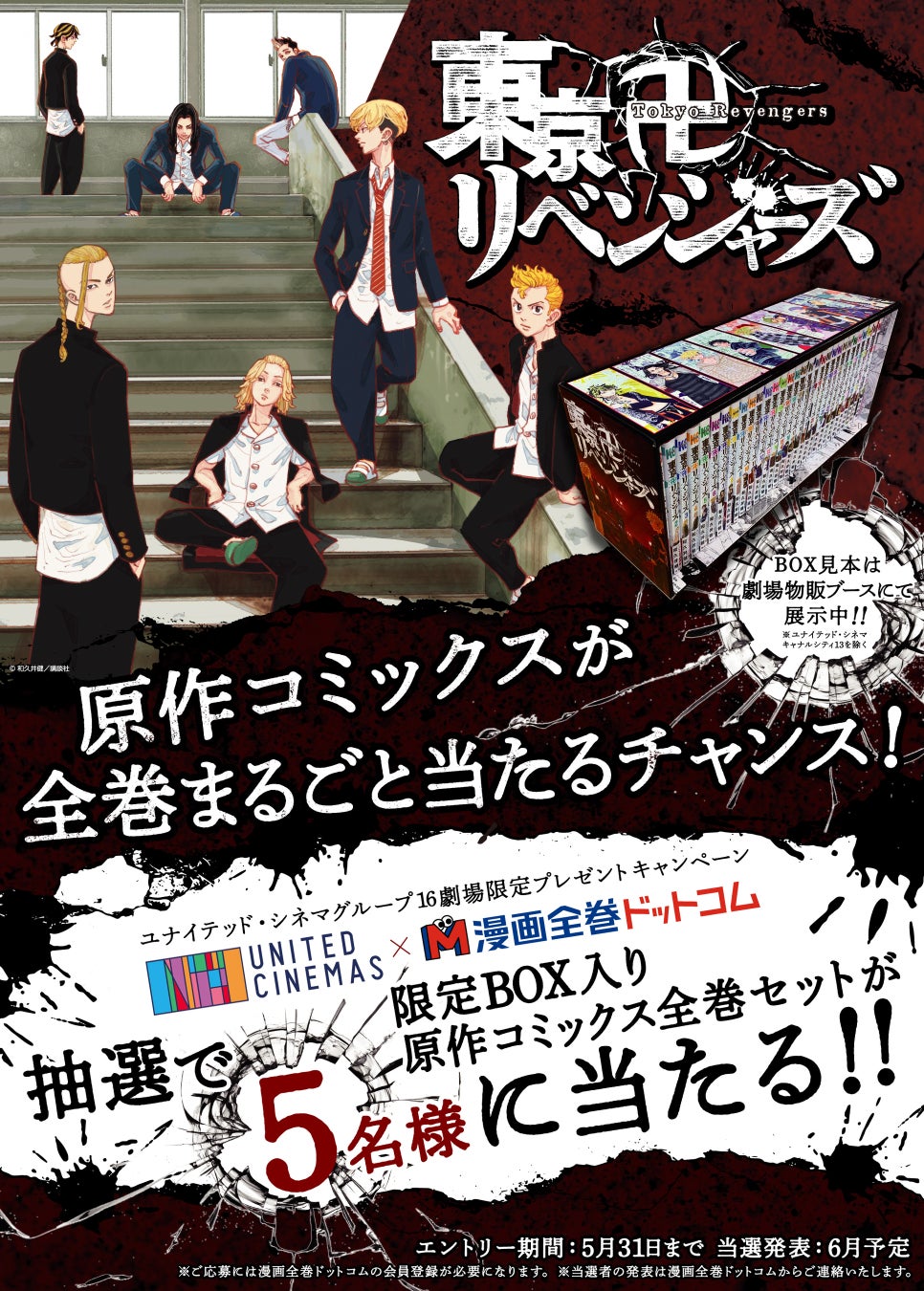 「ユナイテッド・シネマグループ」16劇場を対象に、原作『東京卍リベンジャーズ(講談社「週刊少年マガジン」KC)』コミックス全巻セット(漫画全巻ドットコムオリジナル限BOX入り)を抽選で5名様に当たるプレゼントキャンペーンを実施いたします!!