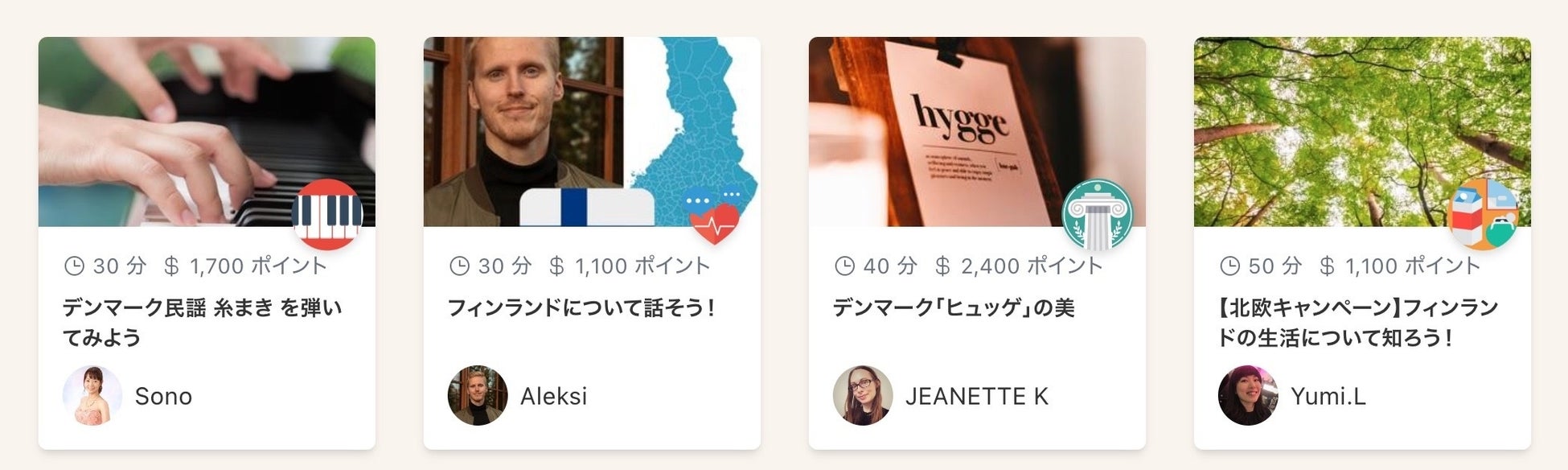 2022年11月は人気の「北欧」がテーマ、フィンランド、デンマーク、ノルウェーなどの北欧各国に関連する言語・文化レッスンを世界の講師陣から募集、27種類のレッスンが集まりました。