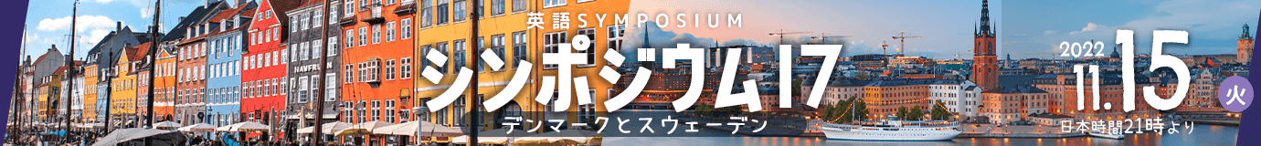 ClaireMcC講師は、2022年11月15日(水)21:00〜 (日本時間)に、オンライン配信される「第17回 英語シンポジウム - デンマークとスウェーデン」に出演します。
